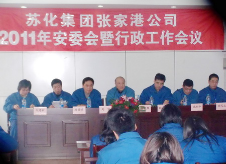 2月18日,张家港公司公司召开2011年安委会暨行政工作会议。集团董事长杨振华到会作重要指示,公司总经理刘宇、副总经理成建敏分别讲话,化工一厂厂长朱利康和化工七厂副厂长肖宏做了交流发言,公司中层以上干部、安全员、设备员80多人参加了会议。会议由张家港公司副总经理沈利平主持,会议还对2010年度优秀员工进行了表彰。