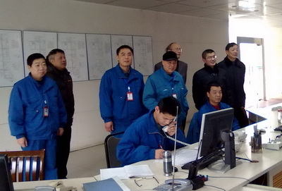 2月7日正月初五,集团董事长杨振华和集团领导班子成员一大早就来到了张家港公司,看望节日期间坚持生产的干部职工,并送上新春的祝福。图为杨总等领导正在生产调度室了解生产运行情况。
